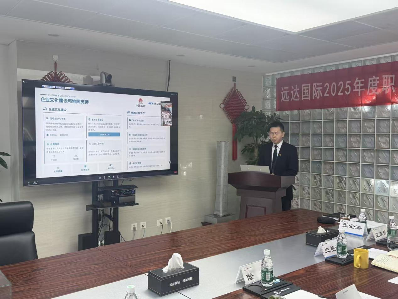 为全面复盘2025年度履职成效、精准锚定2026年工作方向,1月16日下午,远达国际召开2025年度职能部门员工工作述职会。公司领导班子成员、各职能部门负责人及本部机关全体员工参会,通过系统述职凝聚服务“两场”、助推高质量发展的思想共识。