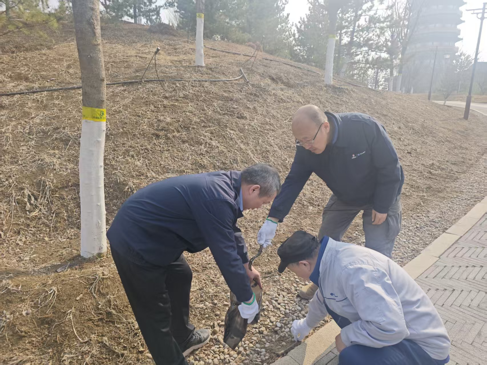 春风轻抚悦容公园的湖面,泛起粼粼细碎金光。活动现场,平日里手持图纸与仪器的工程师们,此刻俯身于草坪与步道之间,认真捡拾散落的水瓶、纸屑,并细心分类装袋。尽管手套沾满尘土,但他们的笑容却如旭日般灿烂。从建筑工地的“质量把关人”,转变为城市环境的“清洁守护者”,远达国际的员工们用实际行动诠释了责任与担当的深刻内涵。